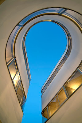 Iluminación y ventilación natural (Orden Tecnológico) es logrado con denuedo por el patio interior (Orden Morfológico) al sesgo que remata con una cuchara de retorno que ayuda a lograr mayor superficie de apertura en los vanos.